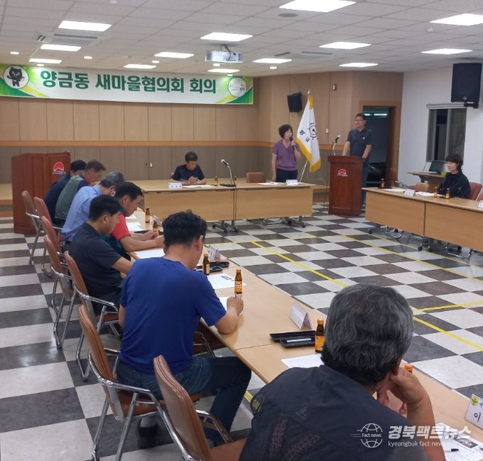 경북팩트뉴스 조현묵 기자 | 김천시 양금동 새마을협의회(회장 김중배, 부녀회장 위필임)는 지난 6월 17일 양금동 행정복지센터 2층 회의실에서 2025년 6월 정기회의를 개최했다.