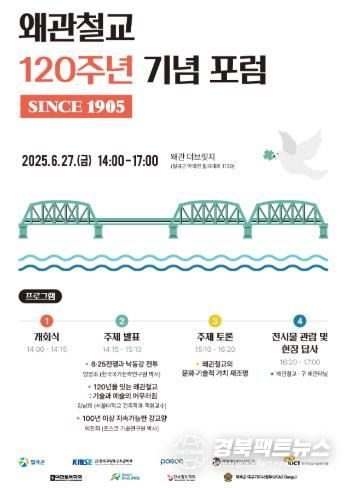 칠곡군은 이번 포럼을 통해 왜관철교가 단순한 인프라를 넘어 지역의 정체성과 공동체 기억이 응축된 문화자산으로 재조명되길 기대하고 있다.