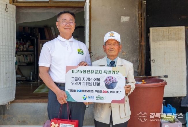 경북팩트뉴스 조현묵 기자 | 김재욱 칠곡군수는 6.25전쟁 제75주년과 호국 보훈의 달을 맞이하여, 6.25참전유공자 서한열(94) 등 8가구의 자택을 직접 방문하여, 국가의 수호와 민족을 위한 헌신에 감사의 인사를 전하고, 특별위문을 실시했다.
