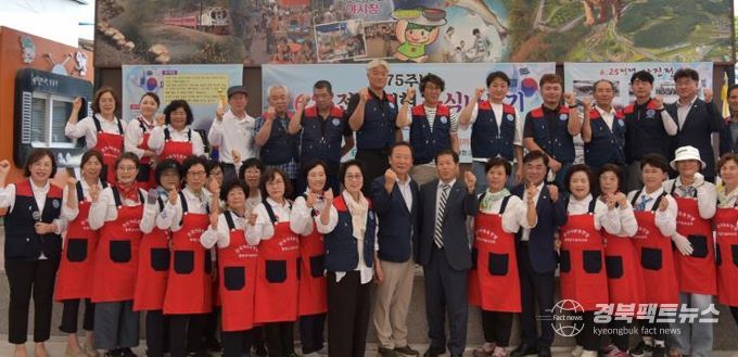 경북팩트뉴스 조현묵 기자 | 한국자유총연맹 봉화군지회는 지난 19일 춘양면 억지춘양시장 내 공연장에서 6.25 전쟁 발발 75주년을 맞아 전쟁 음식 나누기 행사를 가졌다.