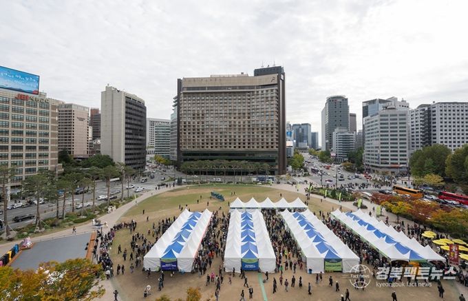 ‘왔니껴안동장터’는 지난해 처음으로 서울광장에서 열린 안동 농축특산물 직거래 행사로, 단 3일간 약 10만 명 이상의 방문객이 몰리며 대성황을 이뤘다. 행사 기간 동안 안동 사과 12t이 완판됐고 안동한우, 찜닭, 간고등어 등 주요 특산물 부스마다 긴 줄이 이어졌다. 참가업체의 판매 실적뿐 아니라 방문객 만족도도 높았으며, 탈놀이 댄스단과 하회별신굿 공연 등 문화공연을 통해 안동의 전통문화에 대한 관심도 끌어올렸다.