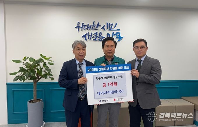 경북팩트뉴스 조현묵 기자 | 폐기물 처리업체 네이처이앤티는 6월 20일 산불 피해를 입은 주민들을 위해 성금 일억원을 안동시에 기부했다.