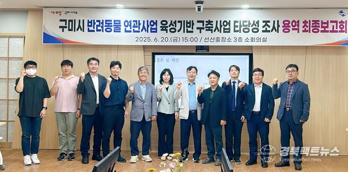 시는 지난 20일, 선산출장소 소회의실에서 ‘반려동물 연관산업 육성기반 구축사업’ 타당성조사 용역 최종보고회를 개최했다.