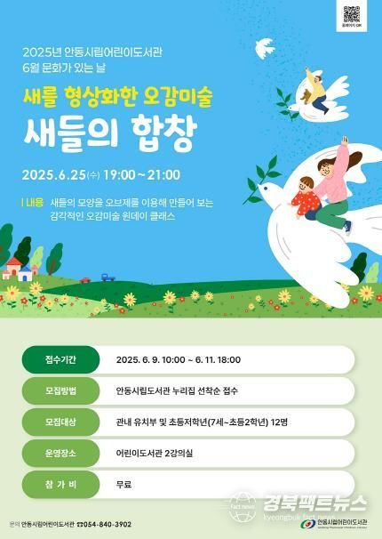 경북팩트뉴스 조현묵 기자 | 안동시립어린이도서관은 6월 문화가 있는 날을 맞아 6월 25일 19시‘오감미술 원데이 클래스’를 운영한다.