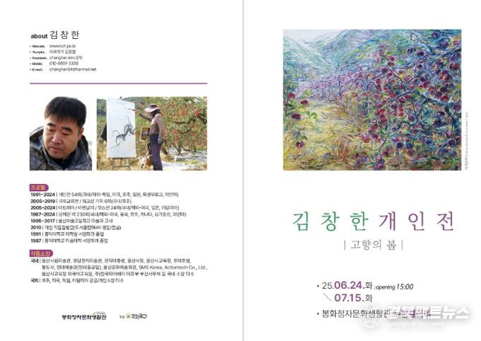 경북팩트뉴스 조현묵 기자 | 봉화정자문화생활관 6월 24일 오후 3시 오프닝 행사를 시작으로 7월 15일까지 누정갤러리에서 ‘김창한 개인전-고향의 봄’을 개최한다.