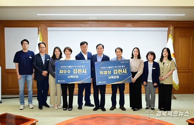 경북팩트뉴스 조현묵 기자 | 김천시는 2025년 경상북도 주관 산불방지 우수기관 평가에서 최우수상과 특별상을 동시에 수상하는 쾌거를 이뤘다. 이는 경상북도 내에서 최초로 최우수상과 특별상을 동시에 수상한 사례로, 김천시의 체계적인 산불 예방 정책과 적극적인 현장 대응 역량이 높이 평가됨을 입증한 것이다.
