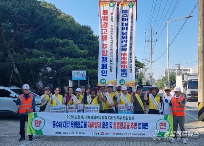 경북팩트뉴스 조현묵 기자 | 김천시는 23일 양금폭포 일원에서 경상북도 옥외광고협회 회원과 관계 공무원이 참석한 가운데 ‘풍수해 대비 옥외광고물 안전 점검 발대식’을 개최했다.