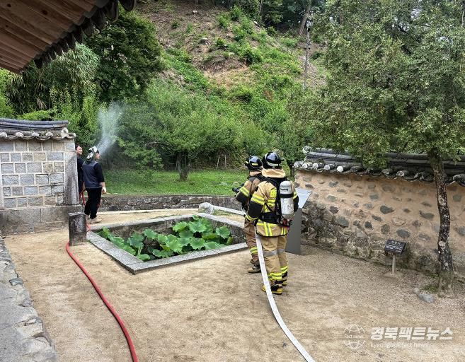 이번 훈련은 도산서원 일원에서 진행됐으며, 서원 내부에서 화재가 발생한 상황을 가정해 초기 화재 진압, 응급 구조 활동, 방문객 대피 및 안전 확보, 문화재 보호를 위한 대응 전략 등을 중심으로 실시했다.