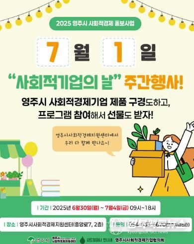 이번 홍보는 6월 30일부터 7월 4일까지 5일간, 영주시사회적경제지원센터와 사회적경제기업 공동판매장에서 다양한 프로그램으로 진행된다.