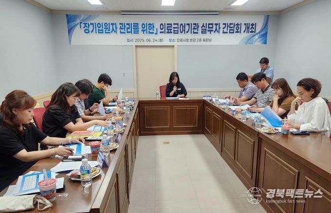 경북팩트뉴스 조현묵 기자 | 안동시는 6월 24일 안동시청 본관 2층 융합실에서 관내 의료기관 장기 입원 담당 실무자를 대상으로 간담회를 개최했다.