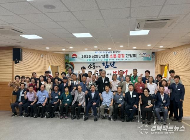 경북팩트뉴스 조현묵 기자 | 김천시 평화남산동은 지난 23일, 평화남산동 행정복지센터 3층 강당에서 관내 기관·단체장, 통장 등 50여 명이 참석한 가운데 배낙호 시장과의 ‘2025년 평화남산동 소통·공감 간담회’를 개최했다.