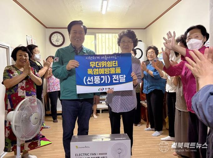 경북팩트뉴스 조현묵 기자 | 권기창 안동시장은 6월 26일 관내 무더위쉼터를 직접 방문해 냉방기 작동 상태 및 안내판 부착 여부 등을 점검하고, 폭염 예방 물품을 전달했다.