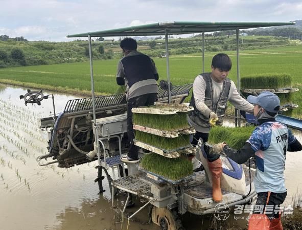 경북팩트뉴스 조현묵 기자 | 상주시에서는 지난 6. 26. 공검농협 가루쌀 작목회 회원농가(김민수농가)에서 공검면 동막리 873 일원에 올해 첫 가루쌀 이앙을 실시했다.
