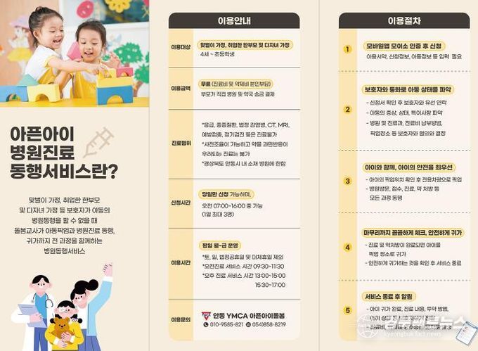 ‘아픈아이 병원진료 동행서비스’는 맞벌이 가정 등에서 돌봄 공백이 발생할 경우를 대비해, 4세 이상 유아 및 초등학생 자녀가 갑자기 아플 때 전담 돌봄교사가 병원 진료에 동행하는 맞춤형 돌봄 지원사업이다. 아동 픽업부터 진료 동행, 귀가까지 전 과정을 지원하며, 진료로 인해 부모가 직장을 비우는 부담을 덜어주는 실용적인 정책으로 긍정적인 반응을 얻고 있다.