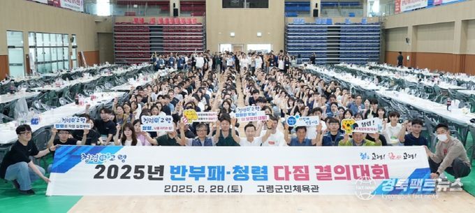 경북팩트뉴스 조현묵 기자 | 고령군은 깨끗하고 신뢰받는 조직문화를 만들기 위해 청렴실천 의지를 다지는'2025년 반부패·청렴 다짐 결의대회'를 6월 28일 고령군민체육관에서 개최했다.