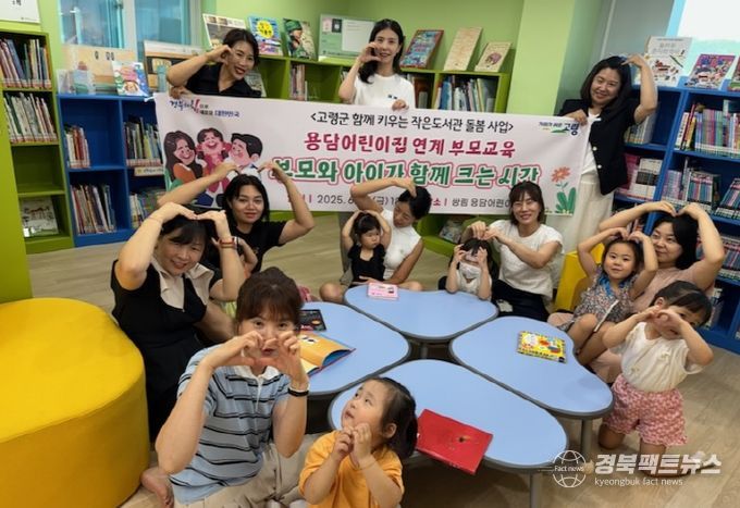 경북팩트뉴스 조현묵 기자 | 고령군이 운영 중인 ‘작은도서관 돌봄 사업’의 일환으로 지난 27일 오후 6시부터 7시까지 고령군 쌍림작은도서관에서 진행된‘아이와 함께하는 부모교육’프로그램에 5~7세 어린이와 부모가 참여해 의미 있는 시간을 가졌다.