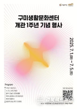 경북팩트뉴스 남유신 기자 | 구미문화재단(대표이사 이한석)은 구미생활문화센터 개관 1주년을 맞아, 7월 1일부터 5일까지 5일간 기념행사를 개최한다.