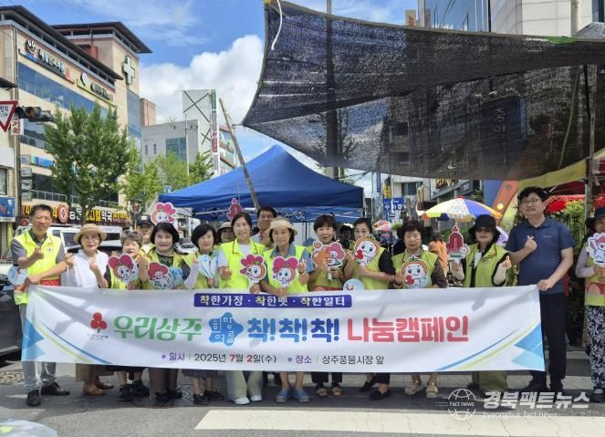 경북팩트뉴스 남유신 기자 | 사랑의열매 상주시나눔봉사단은 2일 오전 10시 상주중앙시장에서 ‘2025 우리상주 희망여름 착!착!착! 나눔캠페인’을 실시했다.