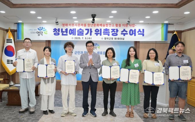 경북팩트뉴스 남유신 기자 | 영덕군은 7월 9일 오전, 군청 제1회의실에서 ‘영해 이웃사촌마을 청년문화예술발전소 활동 지원사업’의 일환으로 제1기 청년예술가 위촉식을 개최했다.