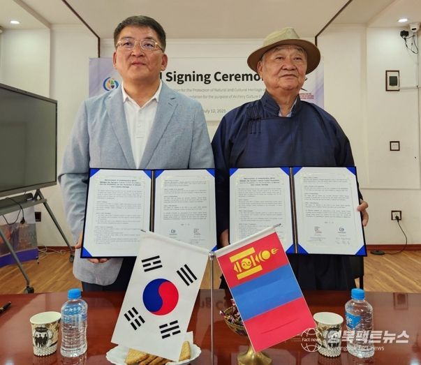 경북팩트뉴스 남유신 기자 | (재)예천문화관광재단은 이달 12일, 몽골 울란바토르에서 몽골의 자연문화유산보호재단과 전통 활쏘기 문화 교류 및 유네스코 인류무형문화유산 공동 등재를 위한 업무협약(MOU)을 체결했다.