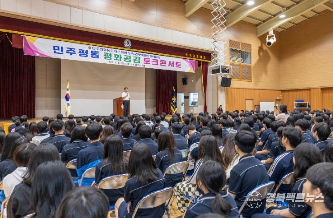 석적고 1·2학년 학생 100여 명이 참석한 이날 행사에서는 북한이탈주민 강사가 직접 무대에 올라 자신의 생생한 탈북 경험과 북한 사회의 현실을 전했다.