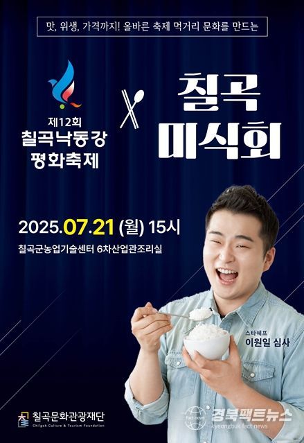 경북팩트뉴스 남유신 기자 | 칠곡문화관광재단과 칠곡군(사회복지과)은 다가올 제12회 칠곡낙동강평화축제 먹거리 부스 입점 외식업체의 매뉴 개발과 품질 향상을 위하여 제3회 칠곡미식회 경연대회를 7월 21일에 농업기술센터 6차산업관에서 개최한다.
