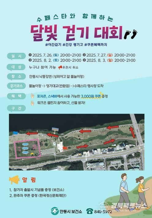 경북팩트뉴스 남유신 기자 | 안동시는 7월 26일부터 8월 3일까지 진행되는 ‘2025 안동 수(水)페스타’ 축제기간 중 ‘달빛걷기대회’를 개최한다.