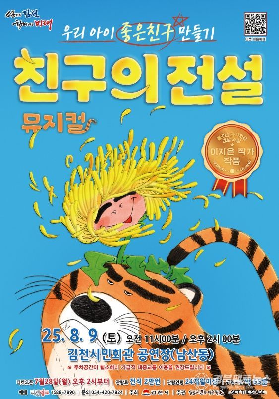 볼로랴 리가치상(어린이문학 분야의 노벨상)을 수상한 이지은 작가의 베스트셀러를 모티브로 만들어진 ‘가족뮤지컬-친구의 전설’은 유아 자녀를 둔 가족에게 유쾌한 재미와 뭉클한 감동의 시간을 선사할 예정이다.