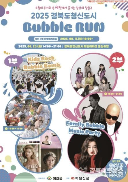 경북팩트뉴스 남유신 기자 | 예천군이 무더운 여름을 시원하게 날려줄 ‘2025 경북도청신도시 버블런(Bubble Run)’ 행사 참가자를 이달 11일부터 15일까지 사전 모집한다.