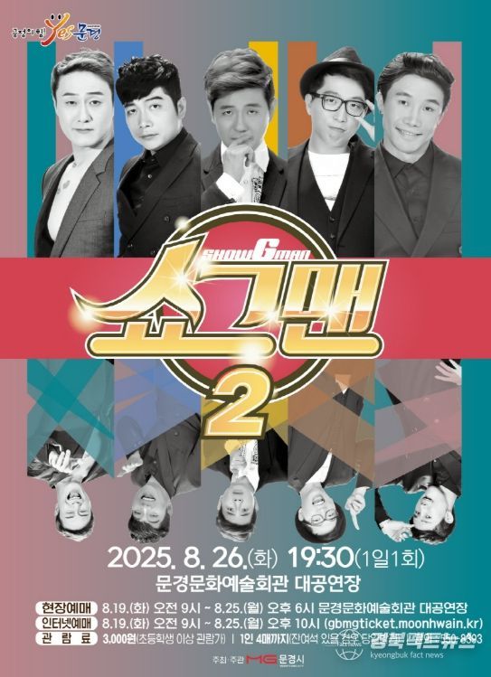 경북팩트뉴스 남유신 기자 | KBS 개그콘서트 출신 5명의 개그맨이 펼치는 개그쇼 ‘쇼그맨 2’ 공연이 8월 26일 화요일 19:30 (1일1회)에 문경문화예술회관 대공연장에서 열린다.