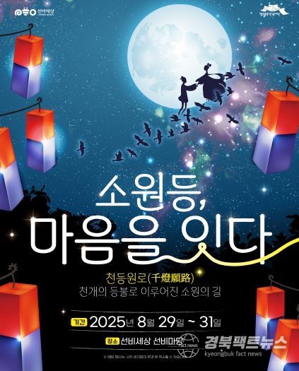 경북팩트뉴스 남유신 기자 | 영주문화관광재단은 오는 29일부터 31일까지 3일간 영주시 선비세상에서 ‘2025 칠월칠석 소원등, 마음을 잇다’ 행사를 개최한다고 밝혔다.