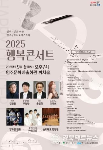 경북팩트뉴스 남유신 기자 | 영주시는 오는 9월 6일 오후 7시, 영주시문화예술회관 까치홀에서 시민들을 위한 ‘2025 행복콘서트’를 개최한다.