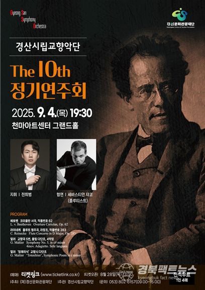 경북팩트뉴스 남유신 기자 | 경산시립교향악단이 『제10회 정기연주회』를 오는 9월 4일 19:30 영남대학교 천마아트센터 그랜드홀에서 개최한다.