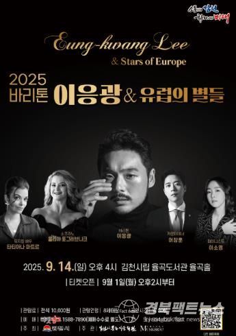 경북팩트뉴스 남유신 기자 | 김천시문화예술회관에서는 9월 14일 오후 4시 율곡도서관 율곡홀에서 기획공연 ‘2025 바리톤 이응광 & 유럽의 별들’을 개최한다.