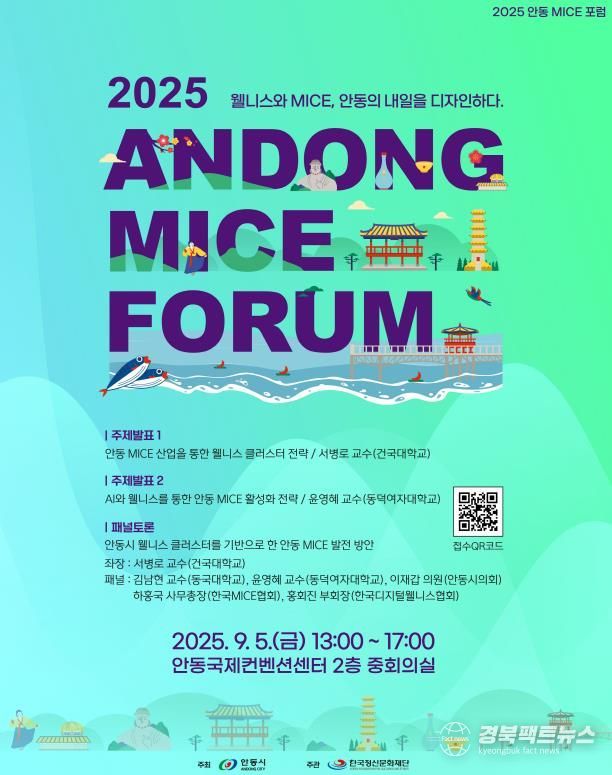 경북팩트뉴스 남유신 기자 | 안동시와 (재)한국정신문화재단은 오는 9월 5일 오후 1시 안동국제컨벤션센터(ADCO)에서 안동 MICE 산업의 경쟁력 강화를 위한 전략적 포럼인 ‘2025 안동 MICE 포럼’을 개최한다고 밝혔다.