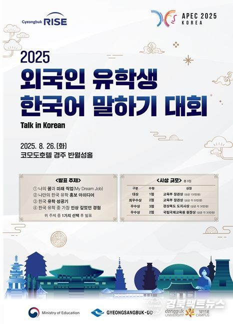 경북팩트뉴스 남유신 기자 | 교육부는 8월 26일 코모도호텔(경주)에서 2025 아시아태평양경제협력체(APEC) 정상회의 기념 ‘외국인 유학생 한국어 말하기 대회(Talk in Korean)’를 성황리에 개최했다고 밝혔다.