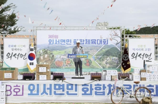 정원용 외서면장은 이번 대회를 준비한 외서면 체육회원들의 노고에 감사의 말을 전한 후 “외서면 주민 모두가 한자리에 모여 함께 즐기며 화합하는 뜻깊은 자리가 됐음에 감사드리며, 이번 대회를 통해 면민 모두가 한가족이 되어 화합과 단결로 도약과 발전의 계기가 되길 바란다”고 말했다.