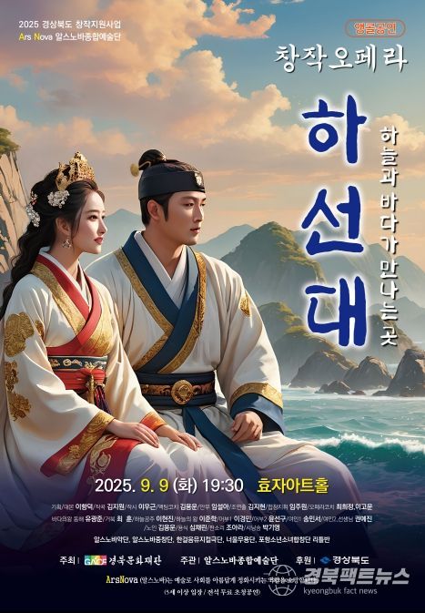 경북팩트뉴스 남유신 기자 | 포항의 자생공연단체 알스노바종합예술단(단장 이항덕)이 오는 9일 오후 7시 30분 남구 지곡동 효자아트홀에서 창작오페라 ‘하선대’ 앵콜공연을 올린다.