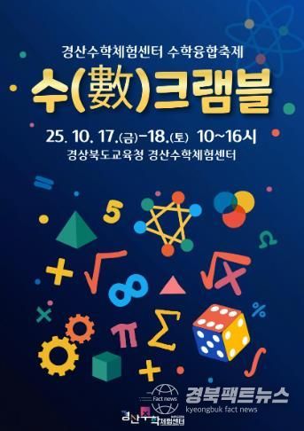 경북팩트뉴스 남유신 기자 | 경상북도교육청 경산수학체험센터는 오는 10월 17일부터 18일까지 이틀간 수학 융합 축제 ‘수(數)크램블’을 개최한다.