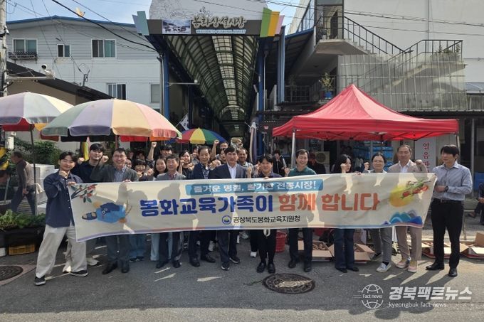 경북팩트뉴스 남유신 기자 | 경상북도봉화교육지원청은 추석을 앞둔 2일 지역 전통시장에서 전 직원이 함께하는 ‘추석맞이 장보기 행사’를 진행했다. 이번 행사는 지역 상권을 살리고 전통시장 이용 분위기를 확산하기 위해 마련됐다.
