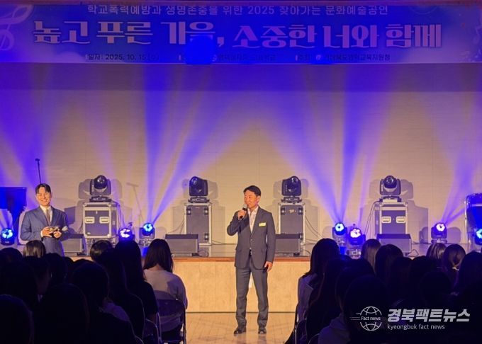 경북팩트뉴스 남유신 기자 | 영덕교육지원청은 10월 14일부터 16일까지 관내 초, 중, 고등학교 5교에서 학생들과 교직원을 대상으로 2025 찾아가는 문화예술공연 ‘높고 푸른 가을, 소중한 너와 함께’를 성황리에 운영했다.