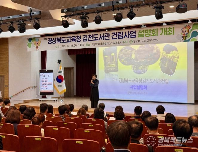 경북팩트뉴스 남유신 기자 | 경상북도김천교육지원청은 10월 16일 김천학생문화예술센터에서 (가칭)경상북도교육청 김천도서관 건립 사업 설명회를 개최했다.