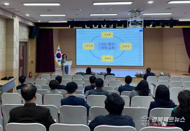 이번 교육은 영덕교육지원청과 직속기관을 포함하여 영덕 관내 각급 학교 및 소속기관의 기관장을 대상으로 진행되며, 성희롱·성폭력·성매매·가정폭력 등 4대 폭력 예방을 위한 고위직 맞춤형 교육으로 운영된다.