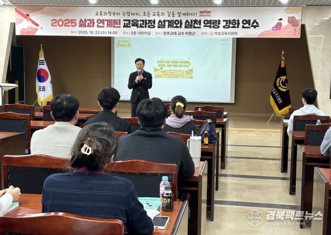 경북팩트뉴스 남유신 기자 | 경상북도의성교육지원청은 10월 22일 의성교육지원청 3층 대회의실에서 『2025 삶과 연계된 교육과정 설계와 실천 역량 강화 연수』를 실시했다. 이번 연수에는 관내 초등학교 교원 32명이 참여하여 2022 개정 교육과정의 핵심 취지를 이해하고, 학생 삶과 연계된 수업 설계 역량을 심화하는 뜻깊은 시간을 가졌다.