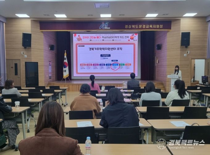 경북팩트뉴스 남유신 기자 | 문경교육지원청(교육장 유진선)은 10월 27일 오후 2시 30분, 문경교육지원청 대회의실에서 문경·상주 지역 초·중학교 교사 40여 명을 대상으로 ‘기초학력 지원 역량 강화 연수’를 개최했다.