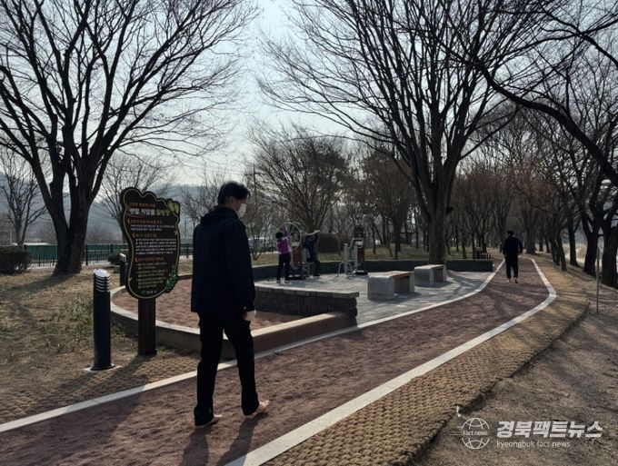 영주소방서 맞은편(문수면 적동리 125-8)에 조성된 맨발걷기 전용 공원은 도심과 가까워 시민들이 일상 속에서 부담 없이 찾을 수 있는 건강·휴식 공간으로 자연을 직접 느끼며 힐링할 수 있는 장소로 기대를 모으고 있다.