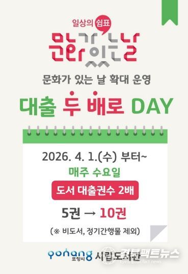 서양진 시립도서관장은 “문화 정책 흐름에 맞춰 시민들이 일상에서 자연스럽게 독서를 즐길 수 있도록 서비스를 확대하고 있다”며 “이번 ‘대출 두배로데이’가 시민들의 독서 생활에 실질적인 도움이 되기를 기대한다”고 말했다.