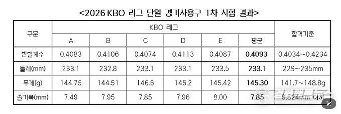 경북팩트뉴스 남유신 기자 | KBO는 3월 30일(월) 2026 신한 SOL KBO 리그 단일 경기사용구의 1차 수시검사 결과를 발표했다.