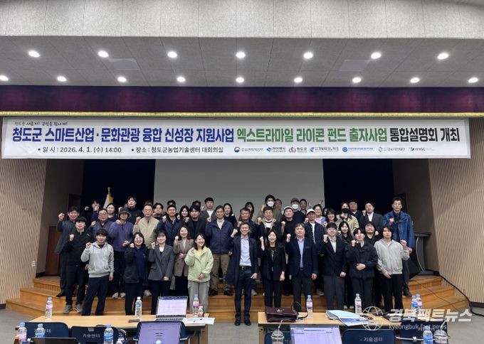 중소벤처기업부를 비롯한 5개 중앙부처와 경상북도, 청도군이 지원하고 (재)경북테크노파크 주관, (재)경북자동차임베디드연구원과 (사)경북시민재단이 참여한 ‘청도군 스마트산업·문화관광 융합 신성장 지원사업’은 공모사업인'2026년 시군구연고산업육성사업'에 선정돼 국비 18억 원을 확보하고 스마트농업, 식품 제조, 문화관광 콘텐츠를 연계한 지역 순환경제 구축을 목표로 추진 중인 사업이다. 청도군에서는 처음 시행되는 사업인 만큼 주관 및 참여기관 관계자가 해당 사업에 대한 전반적인 소개와 신청방법 등에 대해 자세히 소개하는 시간을 가졌다.