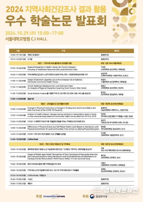 이번 학술논문 발표회는 네 번째 개최하는 행사로, 지역 단위 건강통계인 지역사회건강조사를 활용하여 지역사회 건강 불평등과 만성질환 위험, 개인 건강에 영향을 미치는 지역적 특성 등 우수 연구에 대해 공유했다.